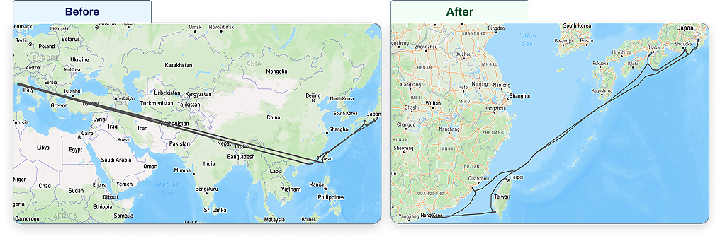 This approach enables Searoutes to transform noisy AIS signals into usable historical vessel trajectories for analysis, visualization, and operational insight.